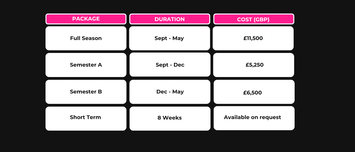 Take your football to the next level with full-time training, fixtures, and performance support in Manchester. Choose a semester, a term, or a full season.